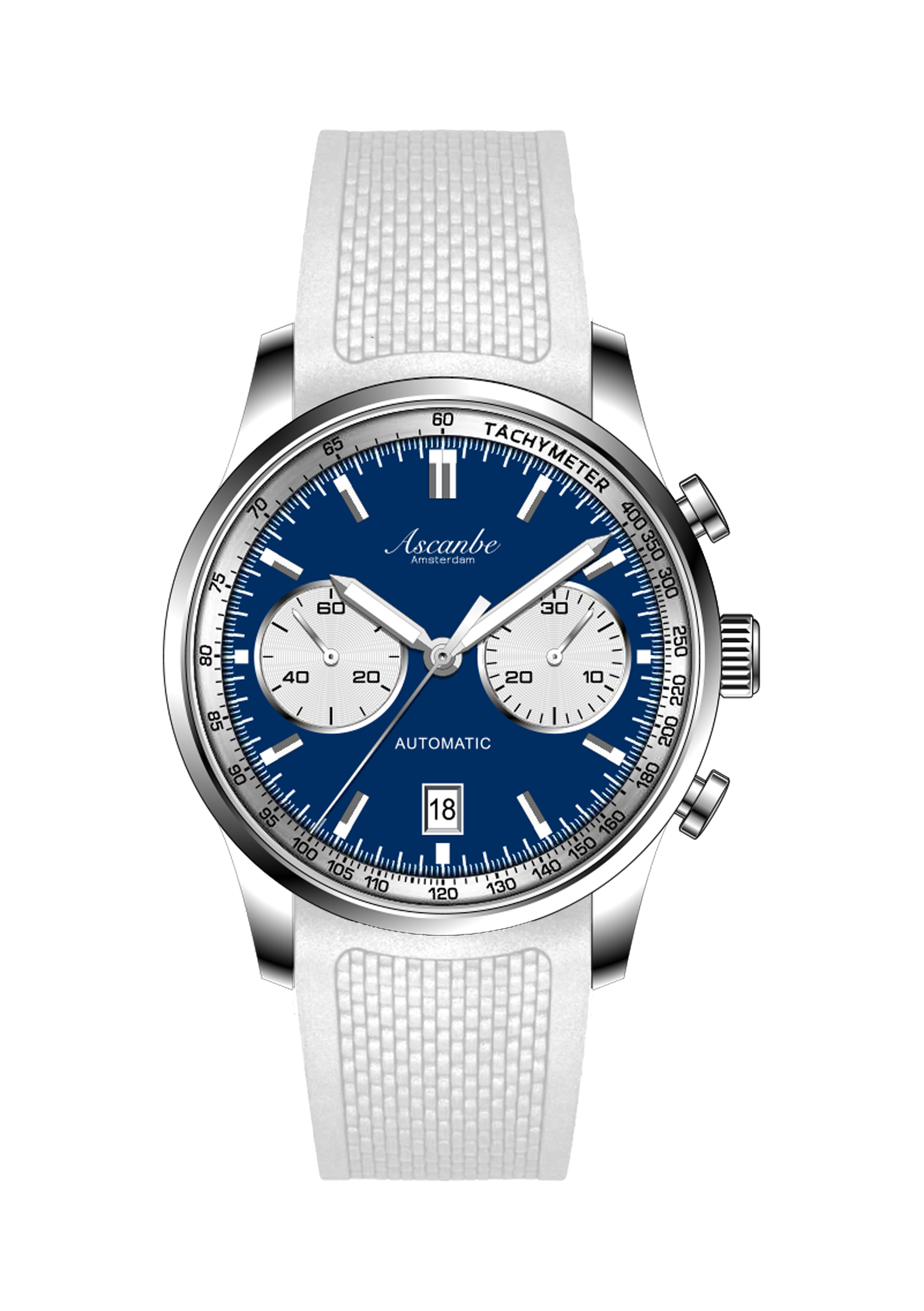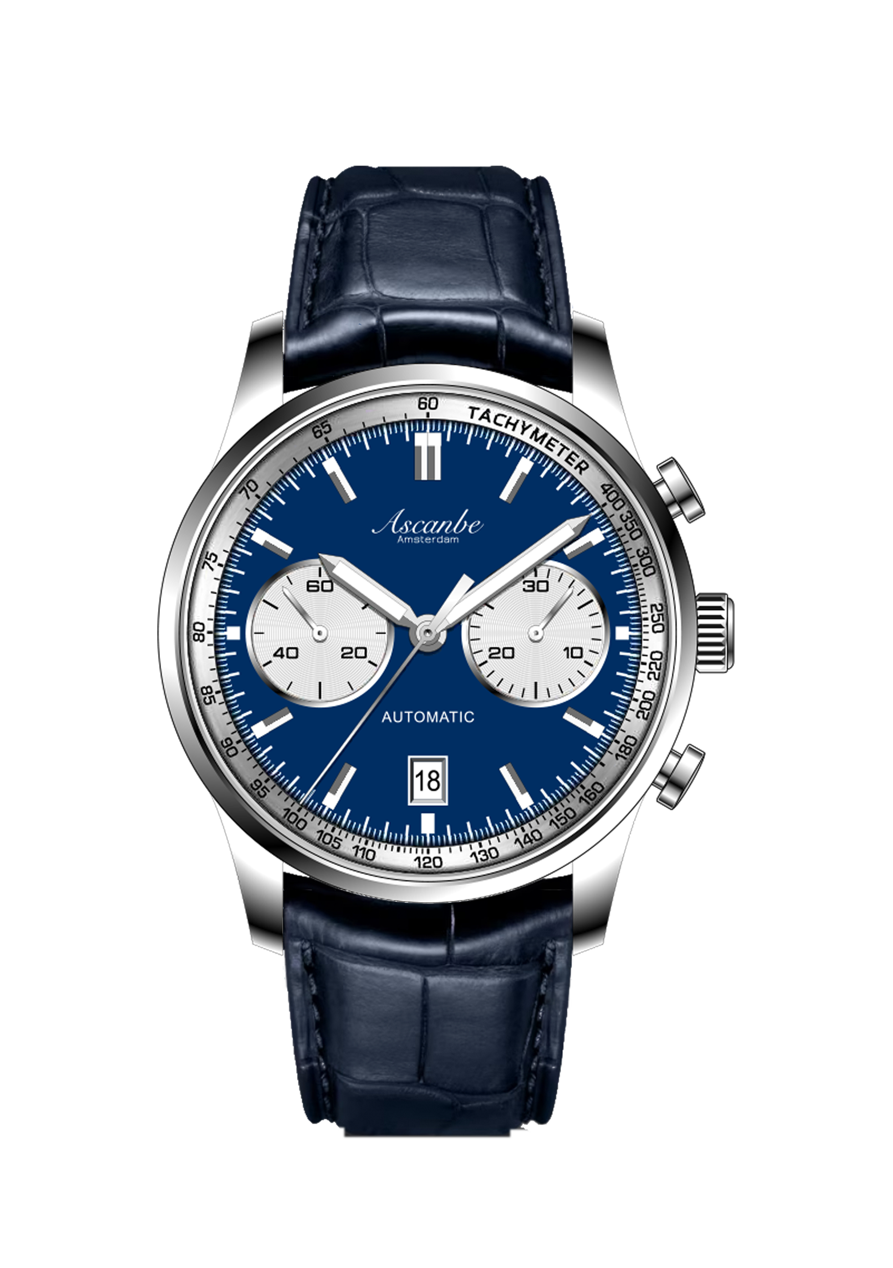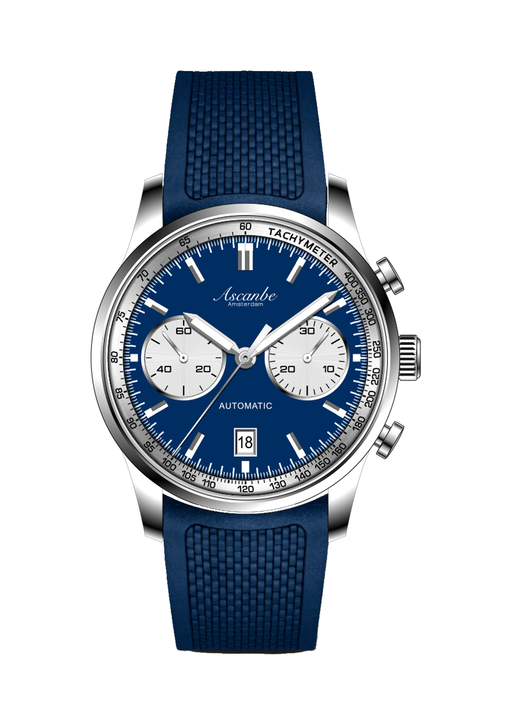 Introducing the Ascanbe B1—a classic chronograph with a sporty edge, designed and crafted in the Netherlands. Powered by the reliable Sellita SW510 automatic movement, the B1 offers both accuracy and functionality, including a chronograph feature for precise timing.
